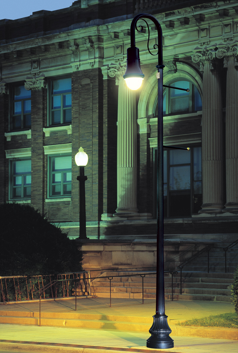 - Extruded or spun pole shaft with cast aluminum structural base provides durability and resists corrosion