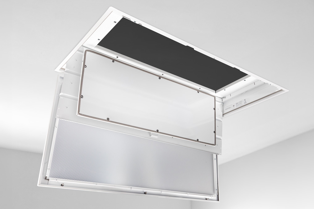 - Optional plenum access panel allows maintenance personnel to service both the plenum space and fixture components without disturbing the ceiling structure or compromising cleanroom integrity
